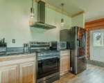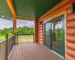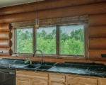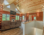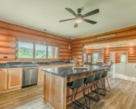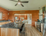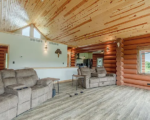 This custom-built full log home its spacious layout and stunning views.