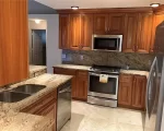 The kitchen has been remodeled with beautiful granite counter tops and back splash. Additional features are high red cherry cabinets, lazy susan and stainless steel appliances.