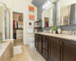 Step into a haven where warm hues embrace you, creating an inviting ambiance reminiscent of a comforting embrace. Revel in the sophistication of porcelain tile floors, complemented by intricate crown molding and captivating double and triple tray ceilings—each detail meticulously crafted to elevate your living experience.